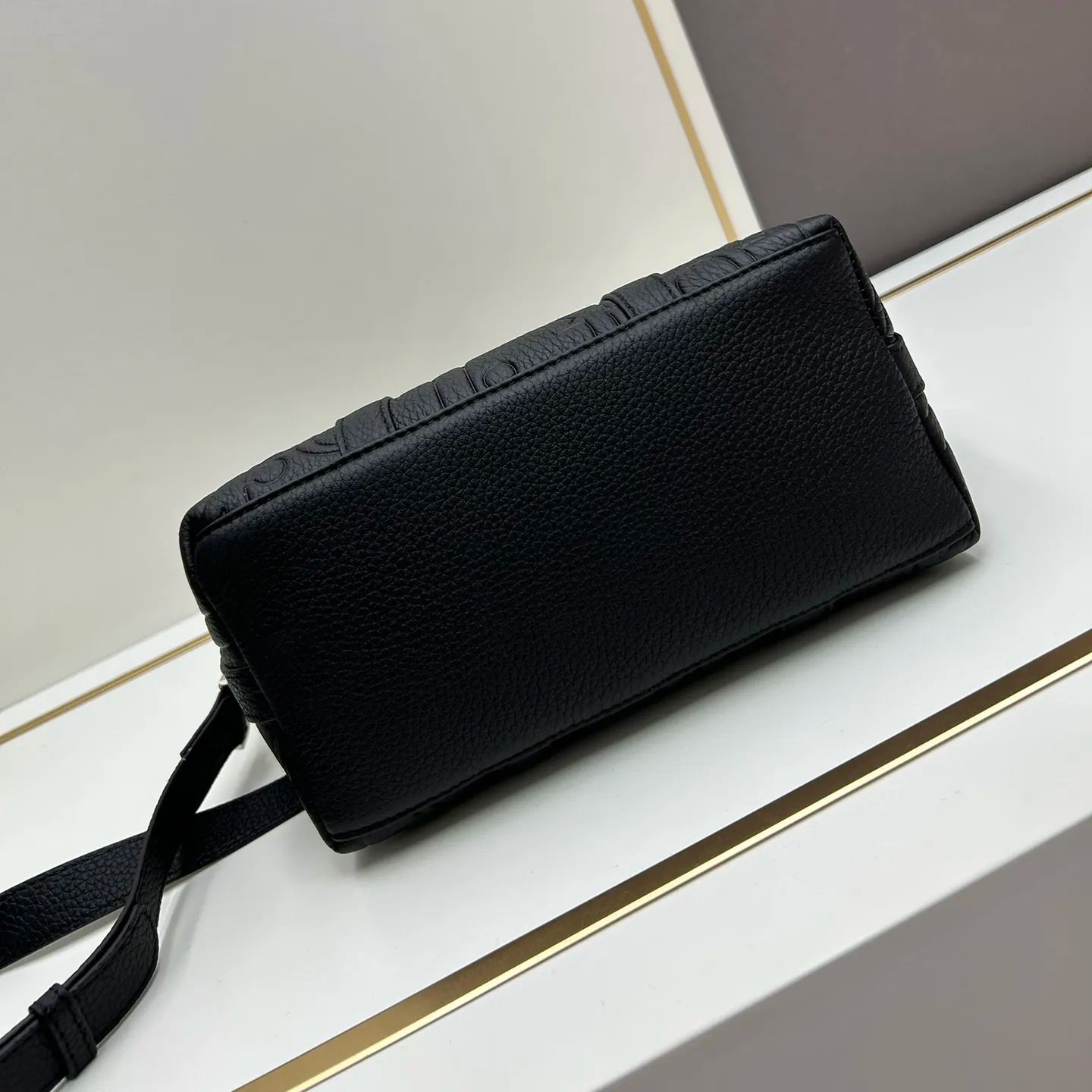 調節可能で取り外し可能なショルダーストラップと、手持ちまたは肩掛け用のトップレザーハンドルが付属しています。
