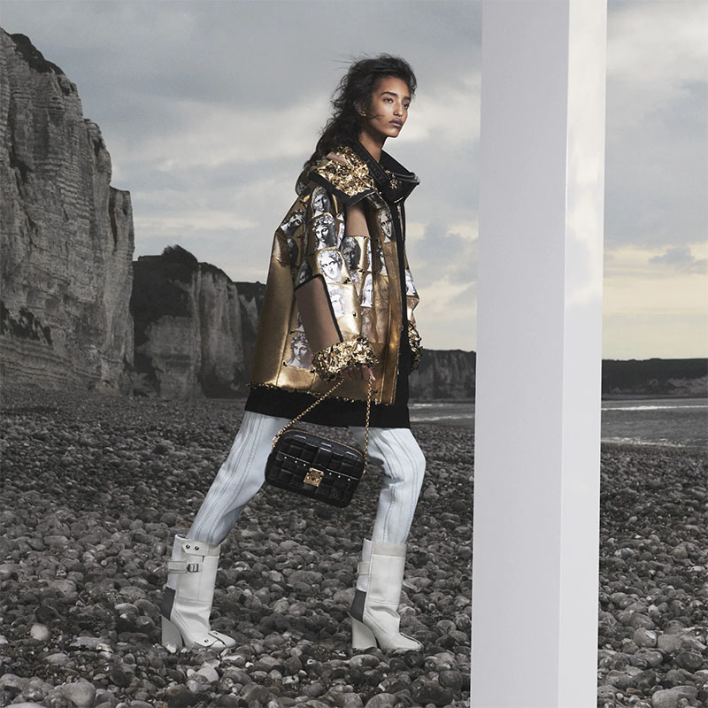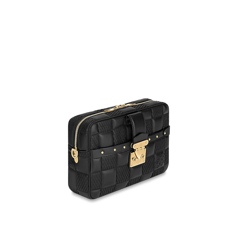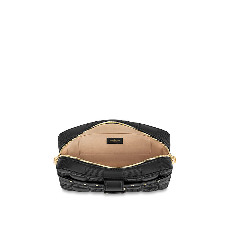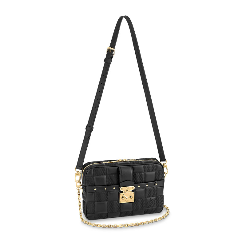 メゾンのアーカイヴにあったカメラバッグ「トロカデロ」から着想を得て ダミエ・ジャイアント パターンをパフ感たっぷりのラムレザーに刺繍した ダミエ・キルト レザーで仕上げた「トロカ MM」。スクエアのフォルムにゴールドカラーのSロックスタイルの留め具が際立ち トリミングとコーナー部分にはスタッズが光ります。調節可能なレザーストラップと取外し可能なショルダーチェーン付き。