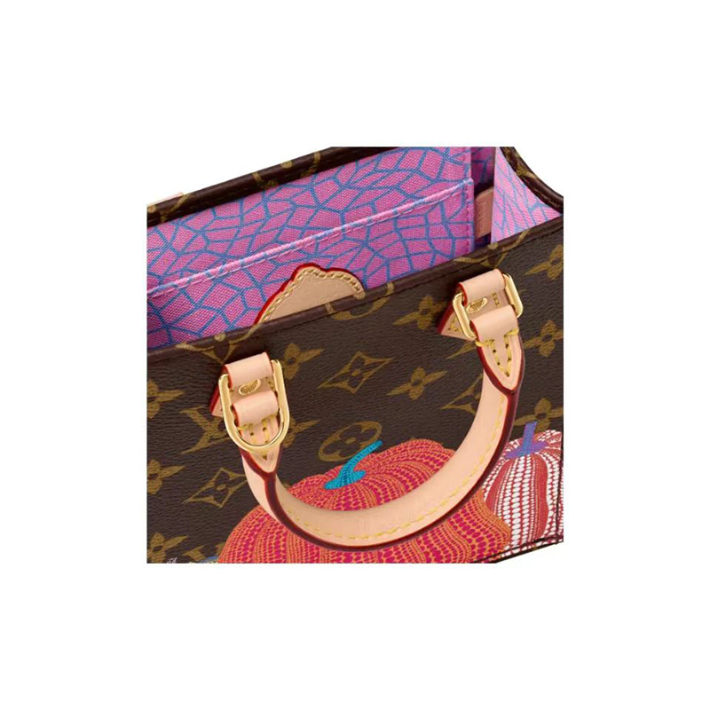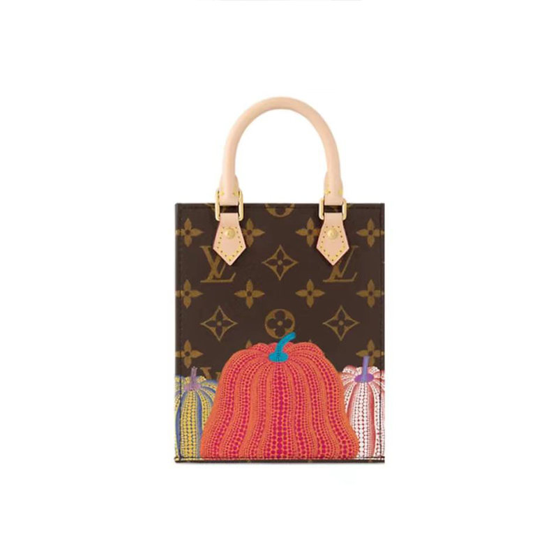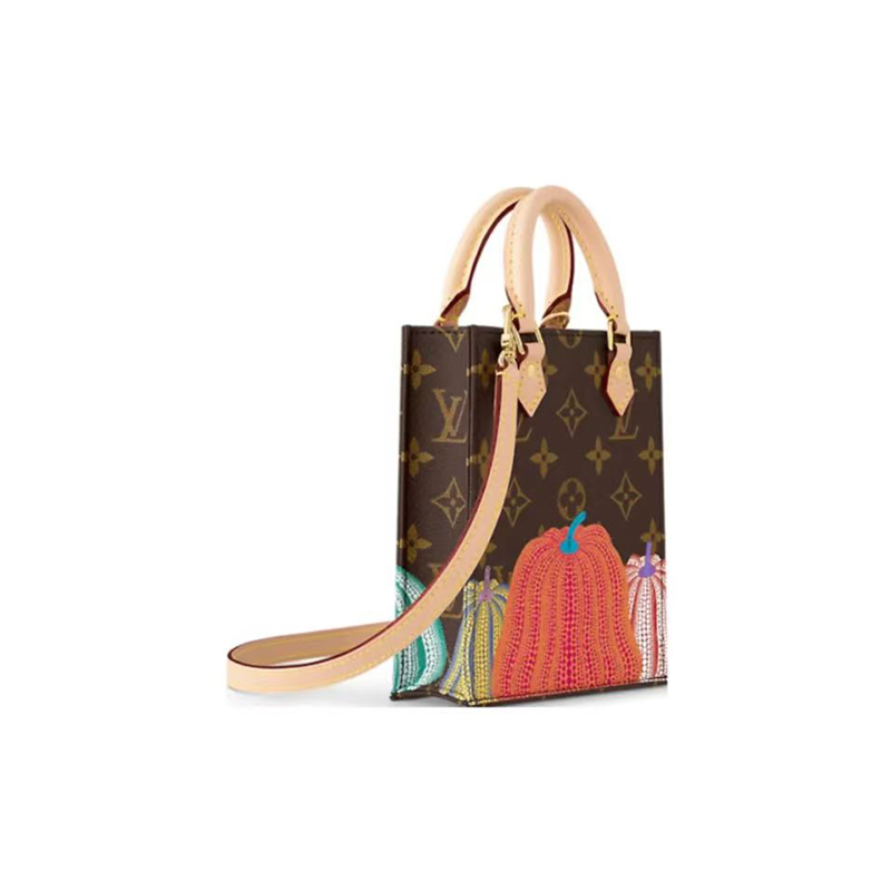 - 「ルイ・ヴィトン × 草間彌生」コラボレーションの新作コレクションに登場した「LV × YK プティット・サックプラ」。著名な日本人アーティスト 草間彌生の作品から着想を得たエクスクルーシブなプリントで アートの世界にかけるメゾンの情熱を体現しました。草間が絵画や彫刻 インスタレーションに用いてきたカボチャは 彼女にとって温もりと前向きな楽観主義の象徴──そのカボチャから着想を得て モノグラム・キャンバスに温かみのある色合いで施した「パンプキン」のモチーフのプリントが コンパクトで実用的なクラッチバッグを ミニチュアサイズのアート作品へと変身させています。