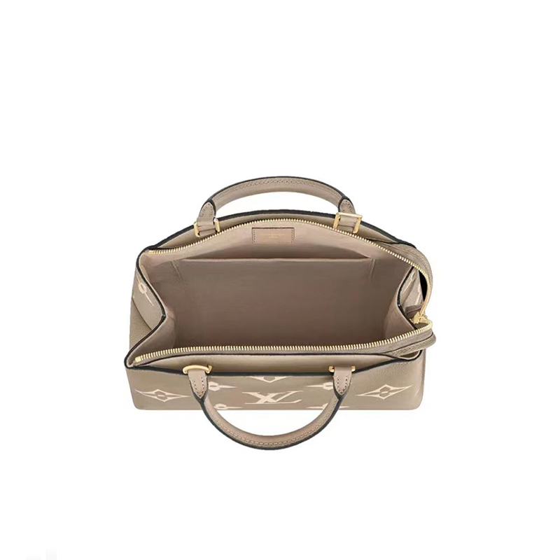 日常生活にぴったりのスマートで洗練された「プティ・パレ PM」。グレインレザーにモノグラム・パターンをオーバーサイズでプリント & エンボス加工して仕立てました。ゴールドカラーのパドロックとレザー製のネームタグが メゾンが誇る美しいラゲージ作りの伝統を想起させるデザインです。取外し & 調節可能なストラップで ショルダーバッグやクロスボディバッグとしてもお楽しみいただけます。