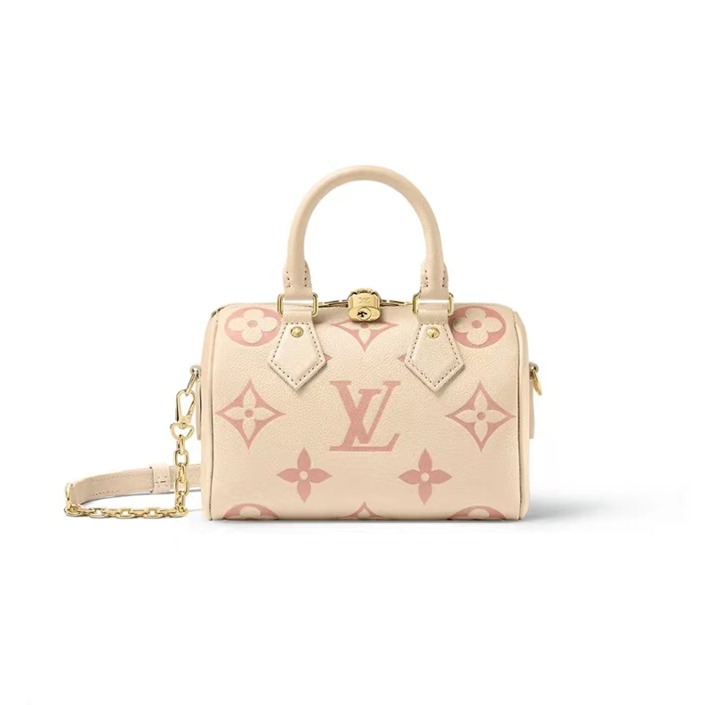 しなやかなグレイン(しぼ)が美しいモノグラム・アンプラント レザーを使用した「ナノ・スピーディ」。バイカラーの色使いが エンボス加工で施したモノグラム・パターンを引き立てます。ルイ・ヴィトンのアイコニックなバッグ「スピーディ」を ミニチュアサイズに再解釈しました。ファスナー開閉式の開口部のほか さまざまな持ち方をお楽しみいただける 2本のハンドルと取外し & 調節可能なショルダーストラップも魅力です。