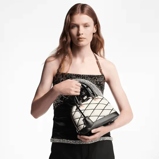 ラムレザーにキルティング加工を施し、ハンドスプレーによる陰影効果となめらかなカウハイドレザーのトリミングを組み合わせた「アルマ BB」。ツートーンカラーがラグジュアリーな雰囲気を演出するアイテムです。2本のトップハンドルで手持ちでも、取外し可能なレザーストラップでショルダーキャリーもお楽しみいただけます。メゾンならではのディテールへのこだわりを感じさせる、パドロック(錠前)とレザーのキーベルも魅力。
