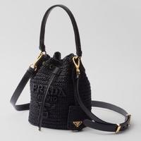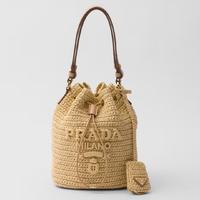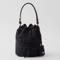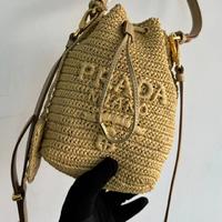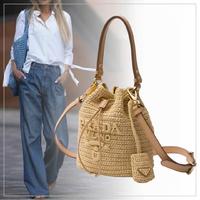 - PRADA◆ラフィア×レザー ミニバケットバッグ ストラップ付