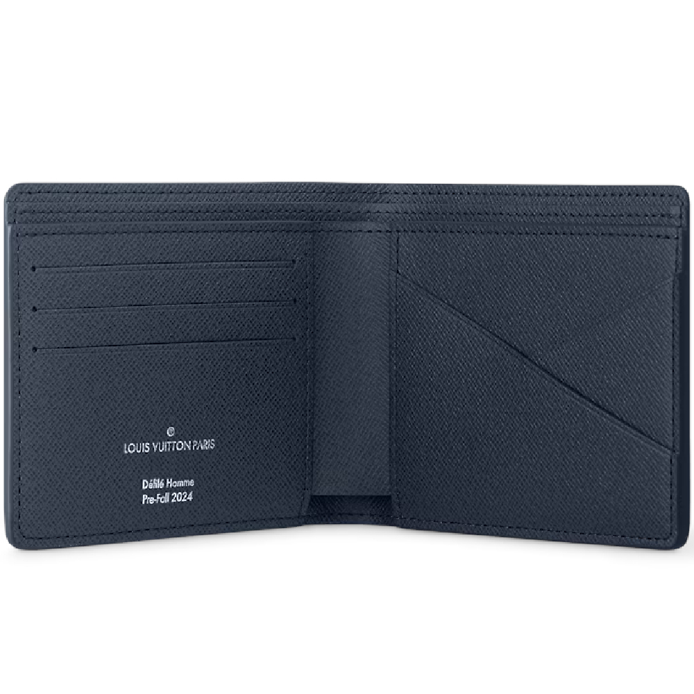 手書き風の「Marque L.Vuitton Deposee」をコントラストカラーで添えた実用的な財布です。