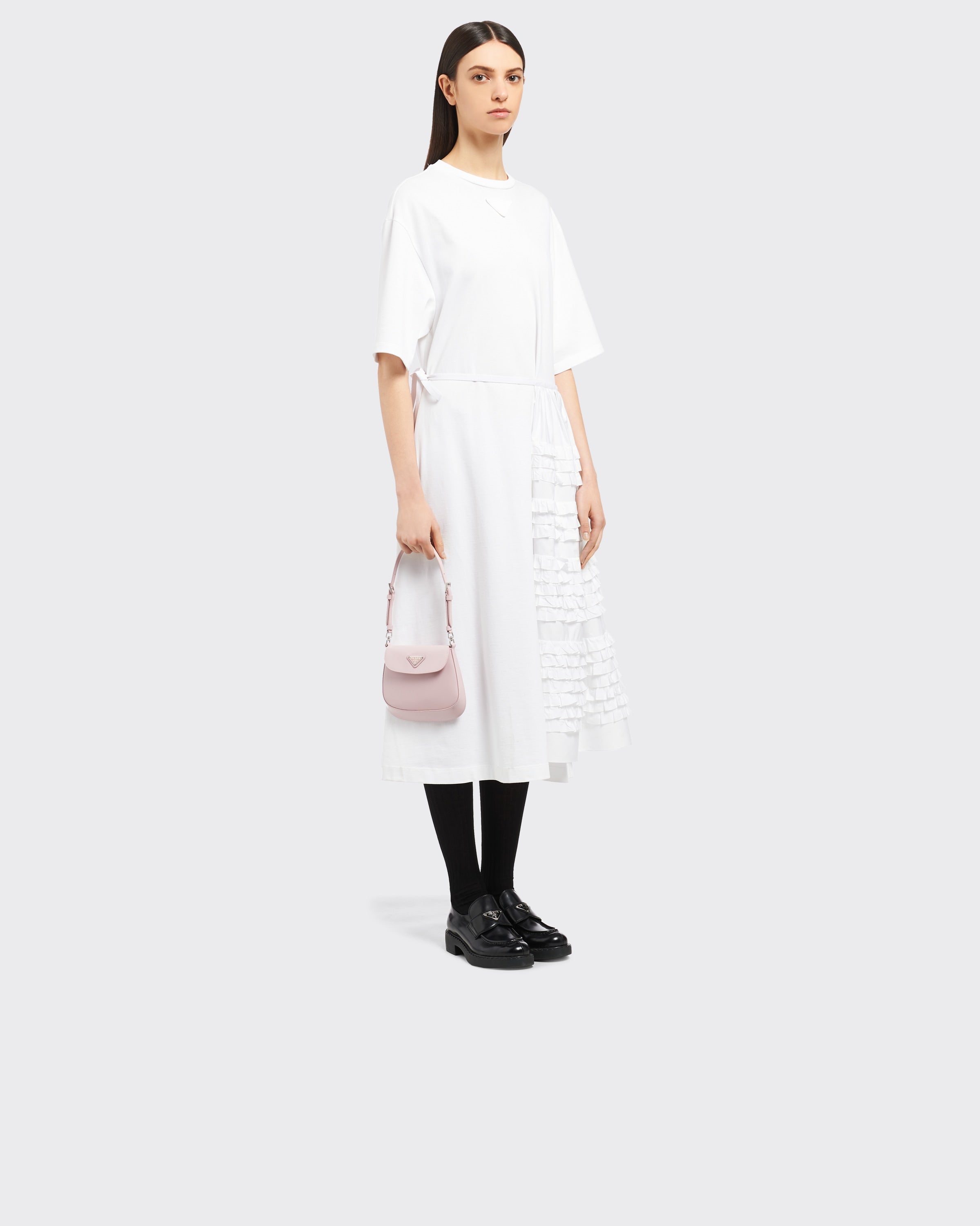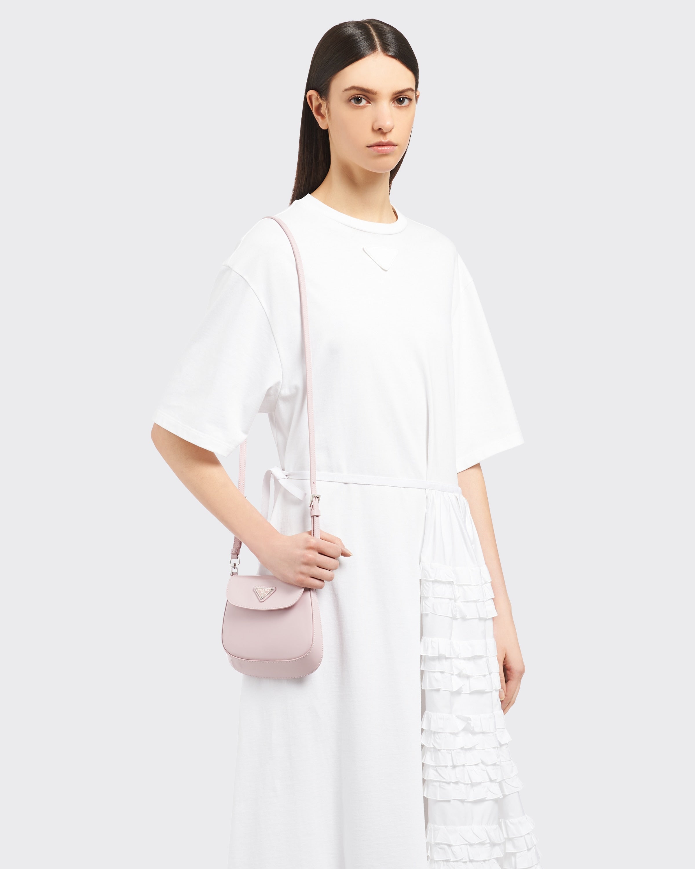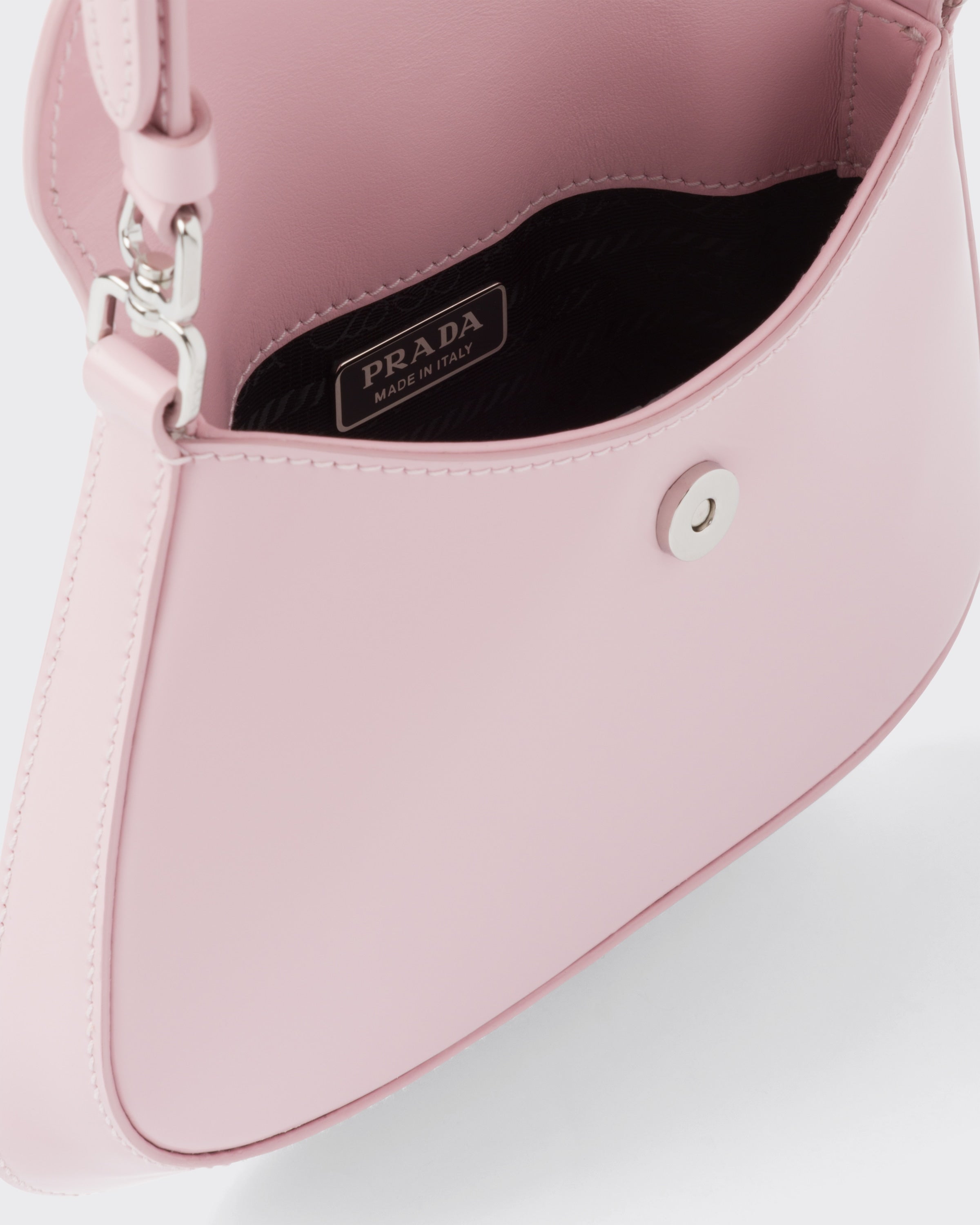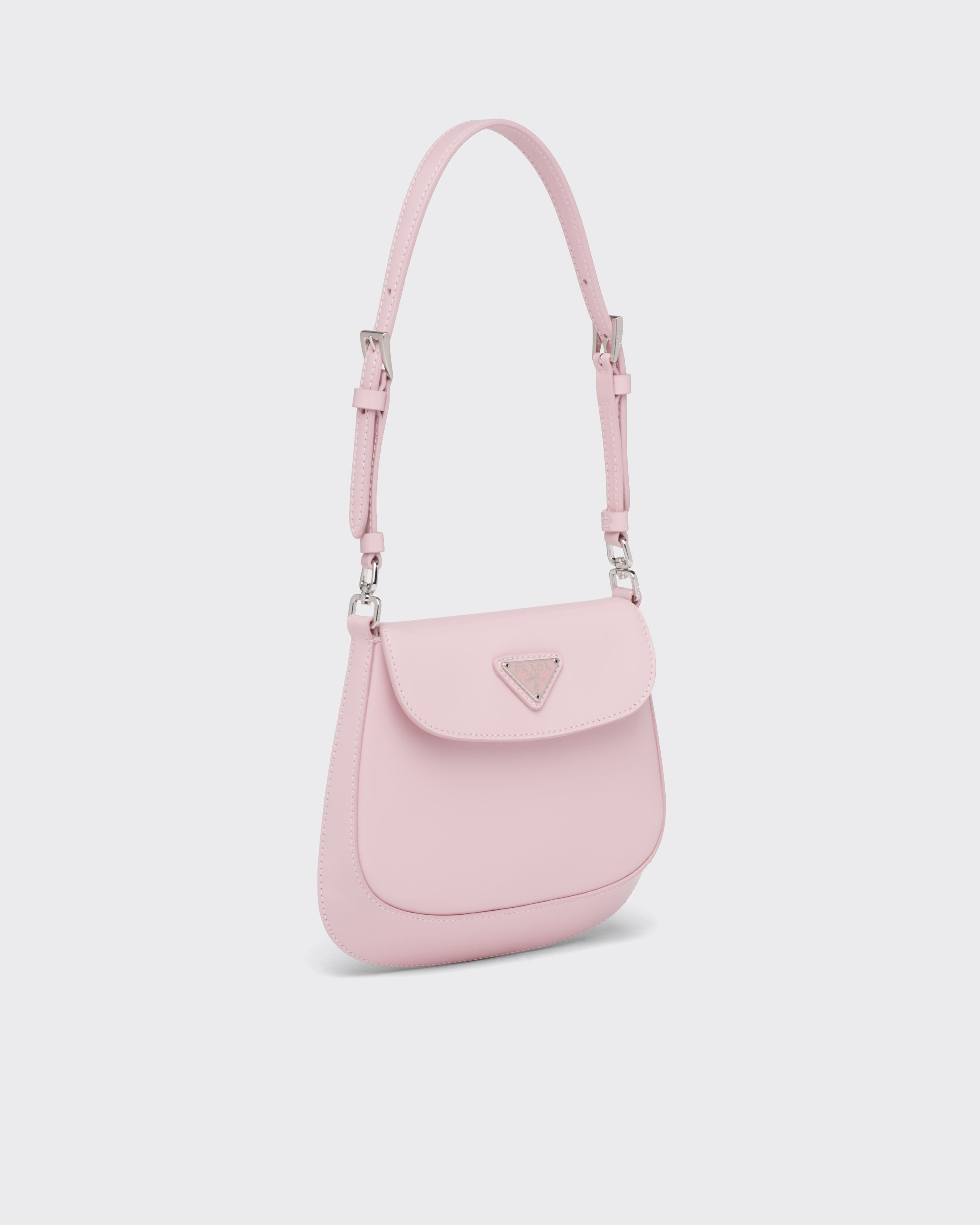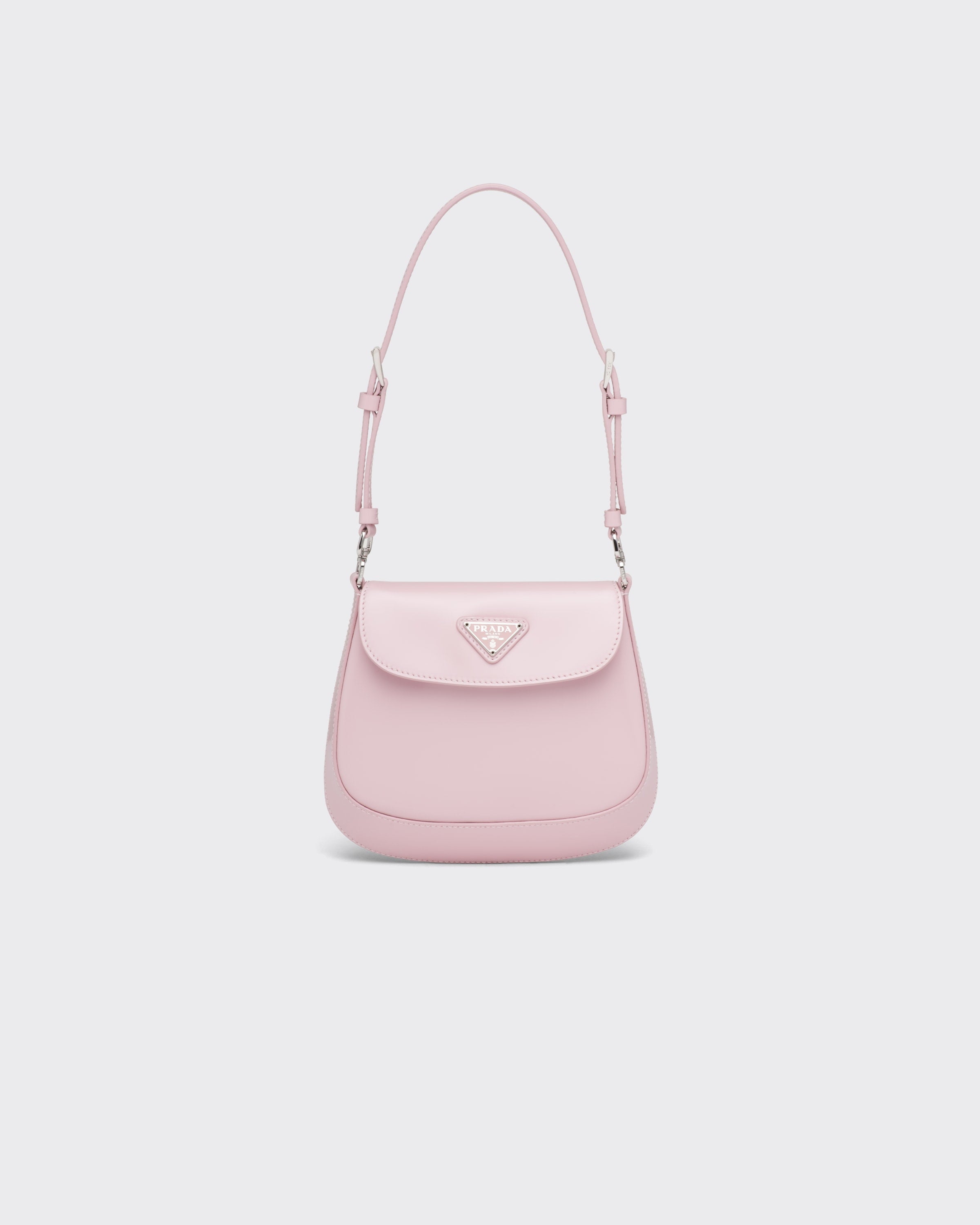 ブランドのアーカイブデザインを再解釈し、クラシシズムとフューチャリズムの完璧な調和を体現したプラダ クレオ バッグ。丸みのある独特な構造が優美な曲線を描き、ラインを引き立てる、上品な魅力が漂うフラップバッグ。調節可能なハンドルでショルダーバッグとしてもハンドバッグとしても使用できる機能的なバッグ。プラダのコレクションを代表する素材であるブラッシュドレザーを使用。常に新しい組み合わせやコントラストを演出し、モダンで様々なシーンでお使いいただける素材です。エナメル トライアングルロゴで仕上げたシルエット。