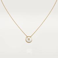 アミュレット ドゥ カルティエ ネックレス XS、18Kイエローゴールド、ブリリアントカット ダイヤモンド1個(0.02ct)、ホワイトマザーオブパール。モチーフ直径:12 mm。チェーン:38-41 cm(調節可能)。
