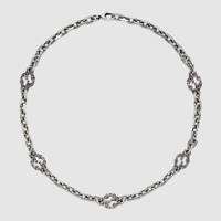 ブランド創設者グッチオ・グッチのイニシャルを組み合わせたインターロッキングGは、1960年代に登場して以来、グッチを象徴するモチーフとしてさまざまなフォルムやデザインでリニューアルされてきました。Ouverture コレクションでは、インターロッキングGがカラフルにアレンジされシルバーのネックレスを彩ります。