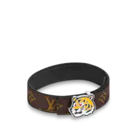 Louis Vuitton x Nigo Collaboration LV Tiger 14mmリバーシブルブレスレットは、英国の紳士スタイルと日本のストリートカルチャーを融合させています。 動物の要素がデザイナーのニゴのトレンドコンセプトを表現し、モノグラムキャンバスとカウレザーが2つのスタイルを推測します。 革製品やメンズジュエリーに最適です。