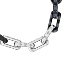 クラシカルなリンク・モチーフをモダンな雰囲気にアップデートしたブレスレット「ブラスレ・ダミエ モノグラム チェーン」。高い専門性と卓越したクラフツマンシップを巧みに組み合わせて、フレッシュな印象のアクセサリーを生み出しました。近づいて目を凝らすと、モノグラム・パターンの刻印とともにダミエ・グラフィット風のパターンがあしらわれているのがわかります。光沢感のある仕上げとマット仕上げの2種類が施され、パターンを際立たせます。
