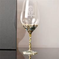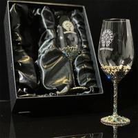クロー心 透かし彫りエナメル金属台座赤ワイングラス高脚杯ペアギフトボックス zm