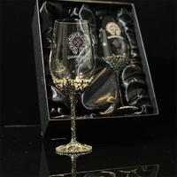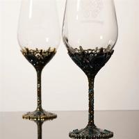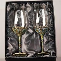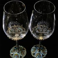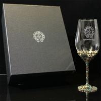 • クロー心 透かし彫りエナメル金属台座赤ワイングラス高脚杯ペアギフトボックス zm
