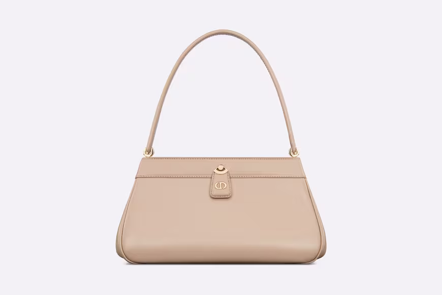 A pillar of the Spring-Summer 2023 fashion show. this season's new Dior Key bag draws inspiration from House archives to create a style with retro charm. Offered in Aesthetic beige box calfskin. it is distinguished by a CD twist clasp inspired by an exclusive lock and revealing a spacious compartment to accommodate all the essentials. Featuring thin leather handles. the refined medium bag can be worn over the shoulder or carried by hand to accompany all of this season's attire.